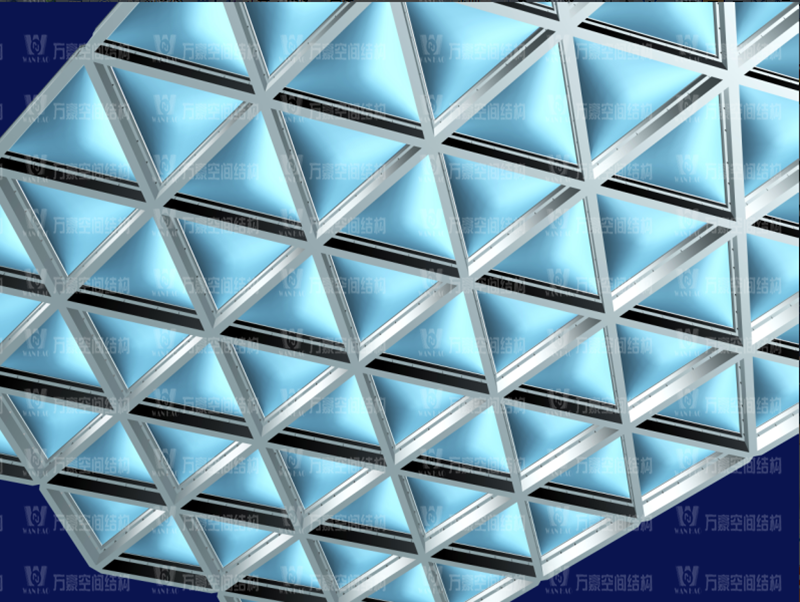 膜結(jié)構(gòu)以屋面結(jié)構(gòu)每個三角為一個單元示意圖