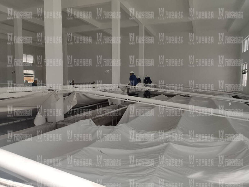 浙江仙琚制藥股份有限公司廢水站室內鋼膜結構項目位于浙江省臺州市仙居縣內,此工程膜結構展開面積2300平米,由寧波萬豪空間結構工程有限公司承建。